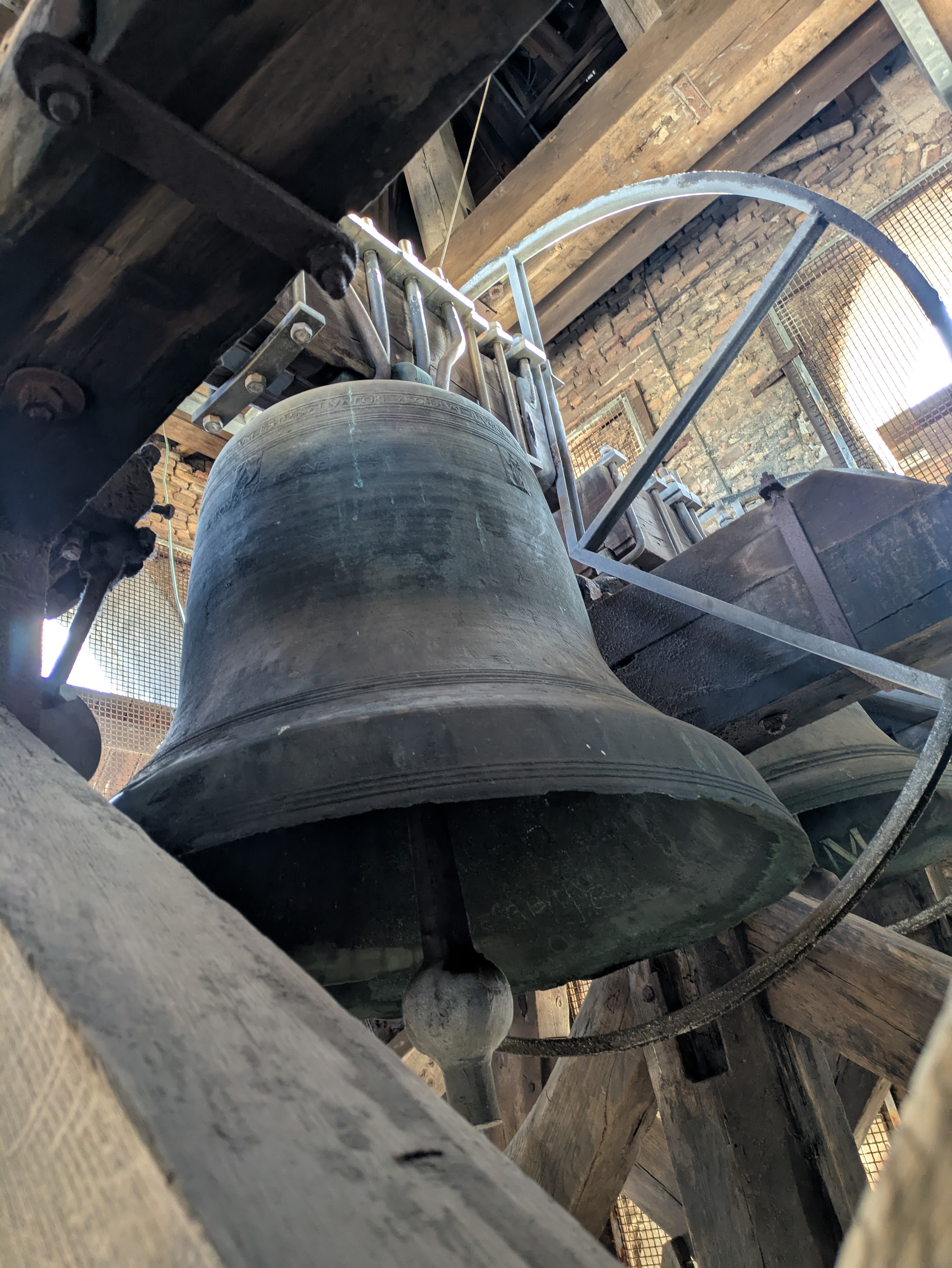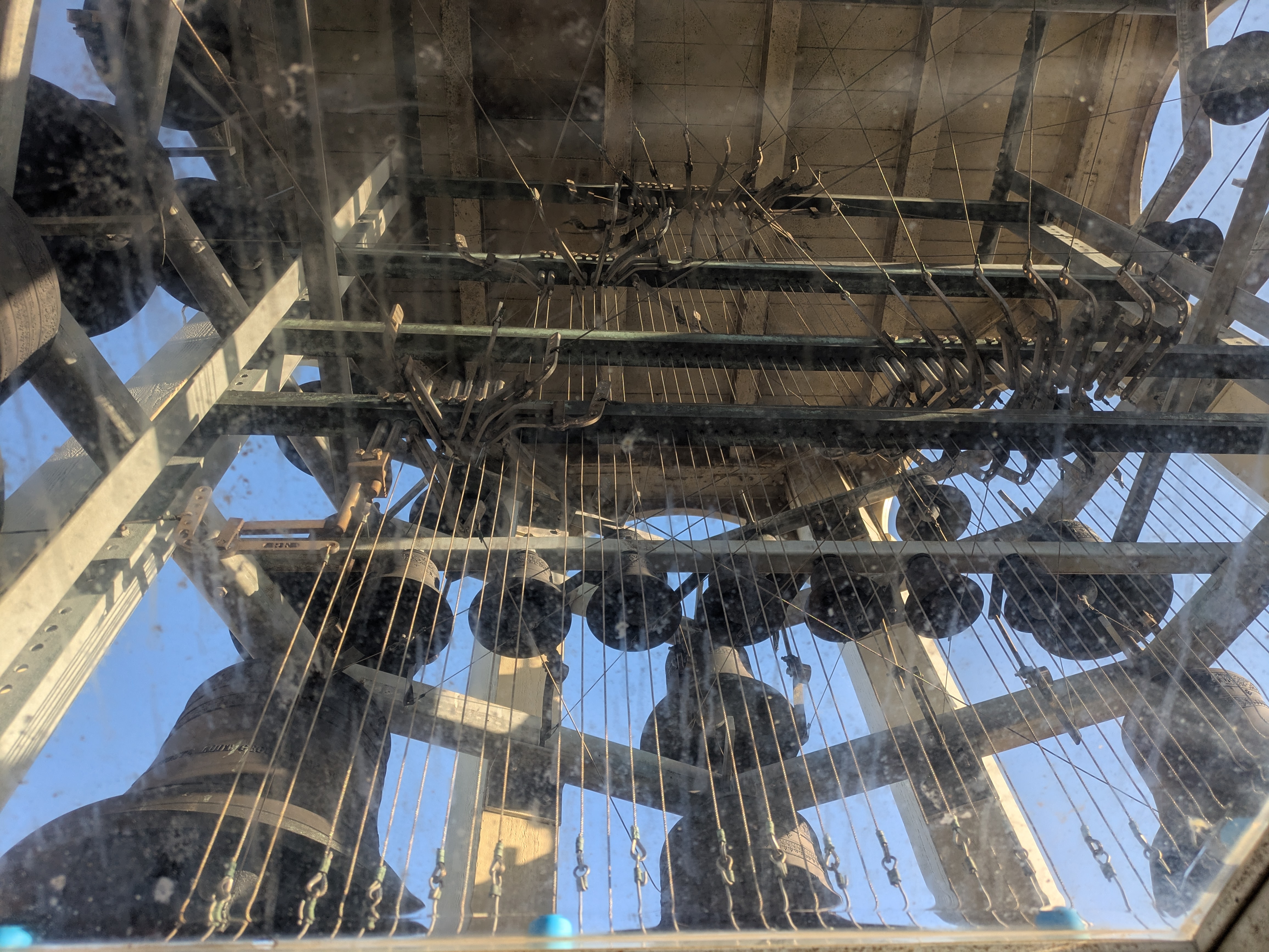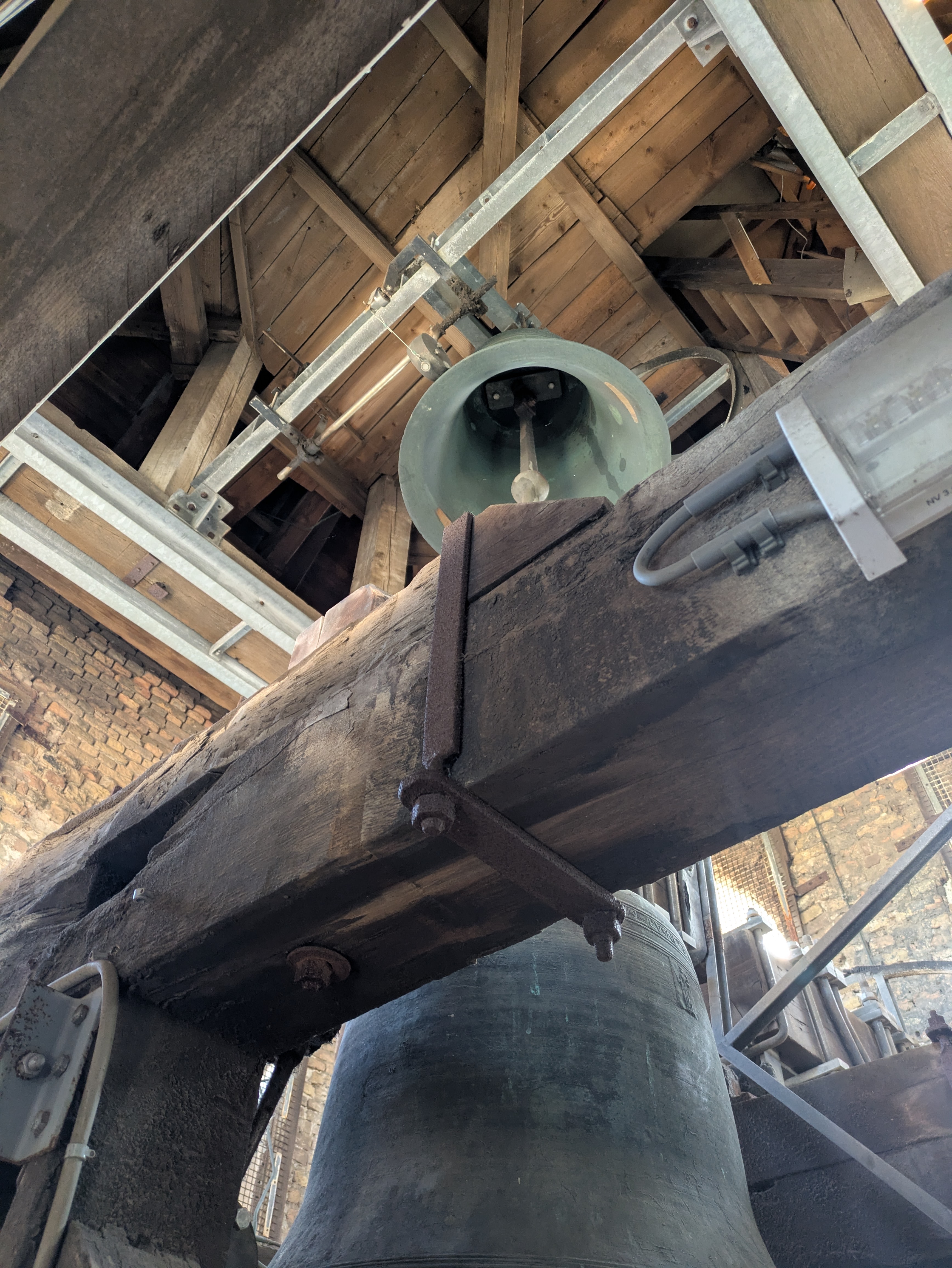 *Carillonist: Toni Raats E: raats3sprong/@/kpnmail DOTnl *Contact: (unknown) *Schedule: Mondays, following ringing of 3 church bells. *Remarks: Bass bell of carillon (P&F, 1957) is also one of four church bells, all hung below cabin; other 3 are ancient.*Bourdon: A, ?, 1957, P&F *Technical data: Traditional carillon of 48 bells